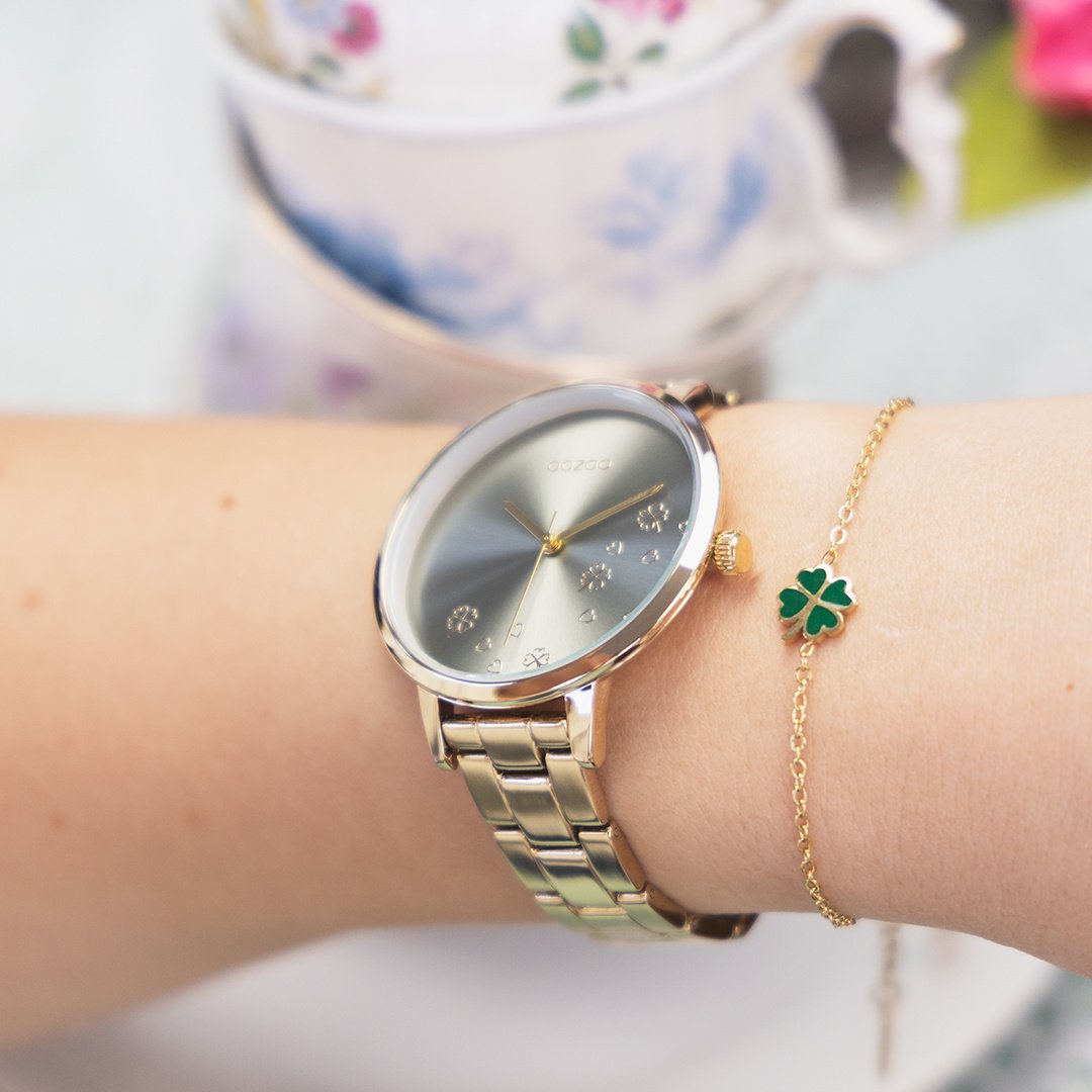 OOZOO Timepieces - C11123 - Damen - Edelstahl-Glieder-Armband - Gold/Grün