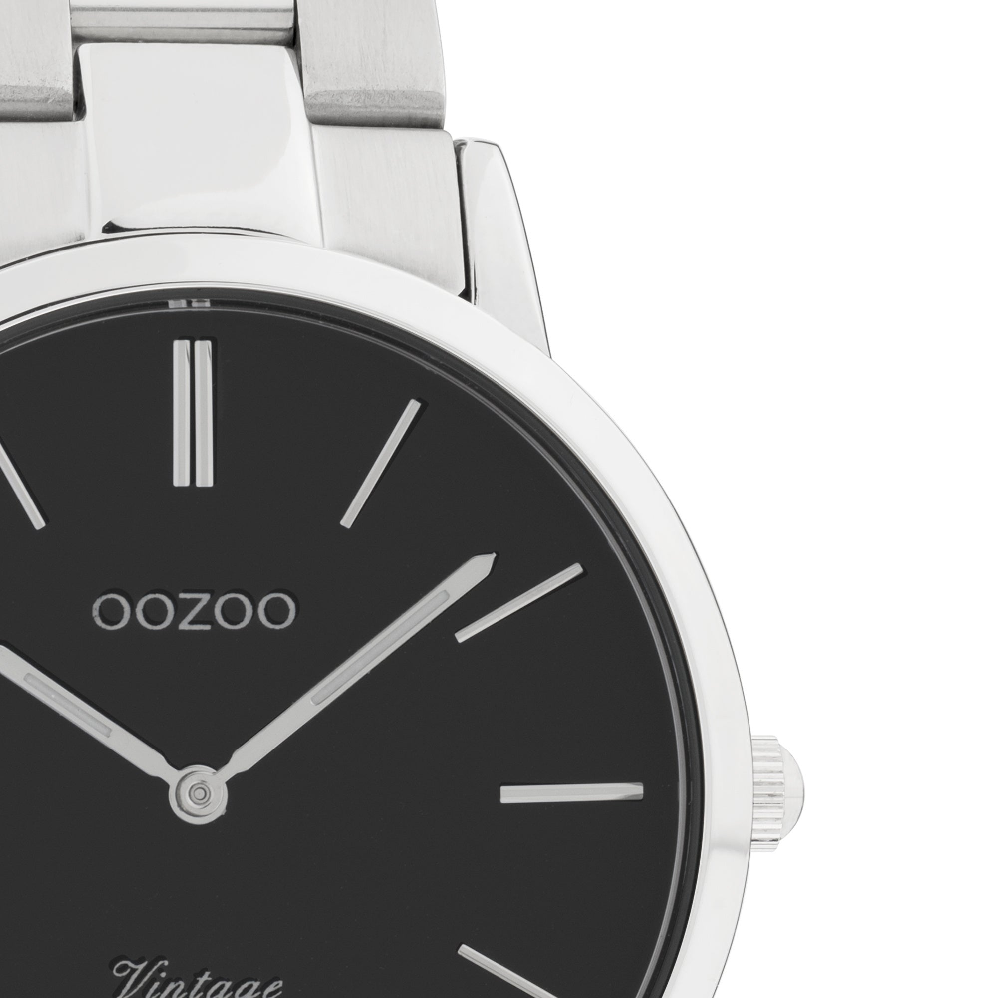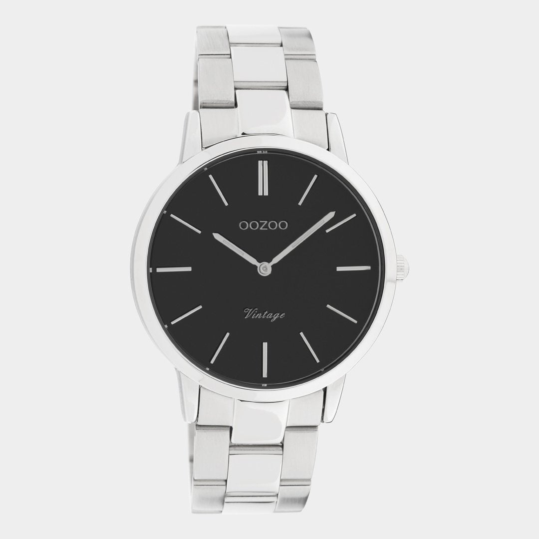 Für das neue Jahrzehnt haben wir die Next Generation-Kollektion als Erweiterung der OOZOO Vintage-Serie kreiert. Bei diesem klassische runde Design C20031 mit einem zeitgemäßen Touch ist für jeden etwas dabei. Diese Damenuhr ist die perfekte Kombination aus Komfort und Eleganz mit ihrem 38mm Gehäuse aus silbernem Metall und dem schwarzen Zifferblatt. Diese Uhr ist ein Muss für jeden Tragekomfort! Das silberne Edelstahlarmband mit mattem Glanz macht diese Uhr zu einem Alltimer, den Sie im nächsten Jahrzehnt noch tragen können. Das Zifferblatt hat silbergestreifte Ziffern und passende Zeiger. Dieses Modell ist mit einem japanischen Markenuhrwerk ausgestattet. Außerdem ist die Uhr spritzwassergeschützt, nickelfrei und hat einen Gehäuseboden aus Edelstahl.