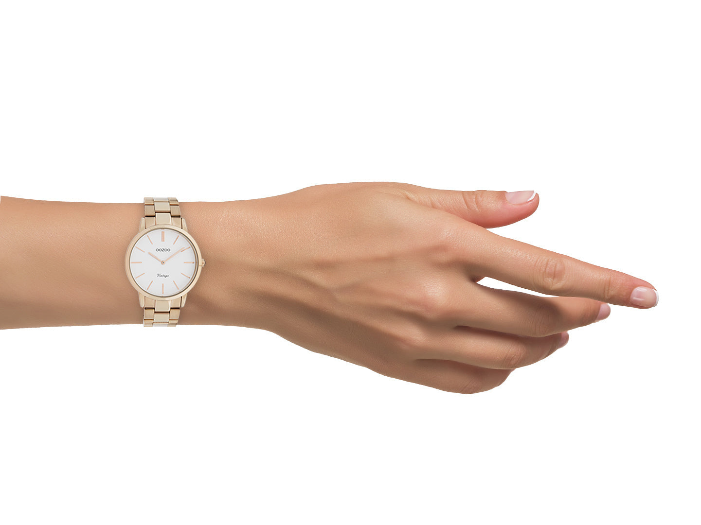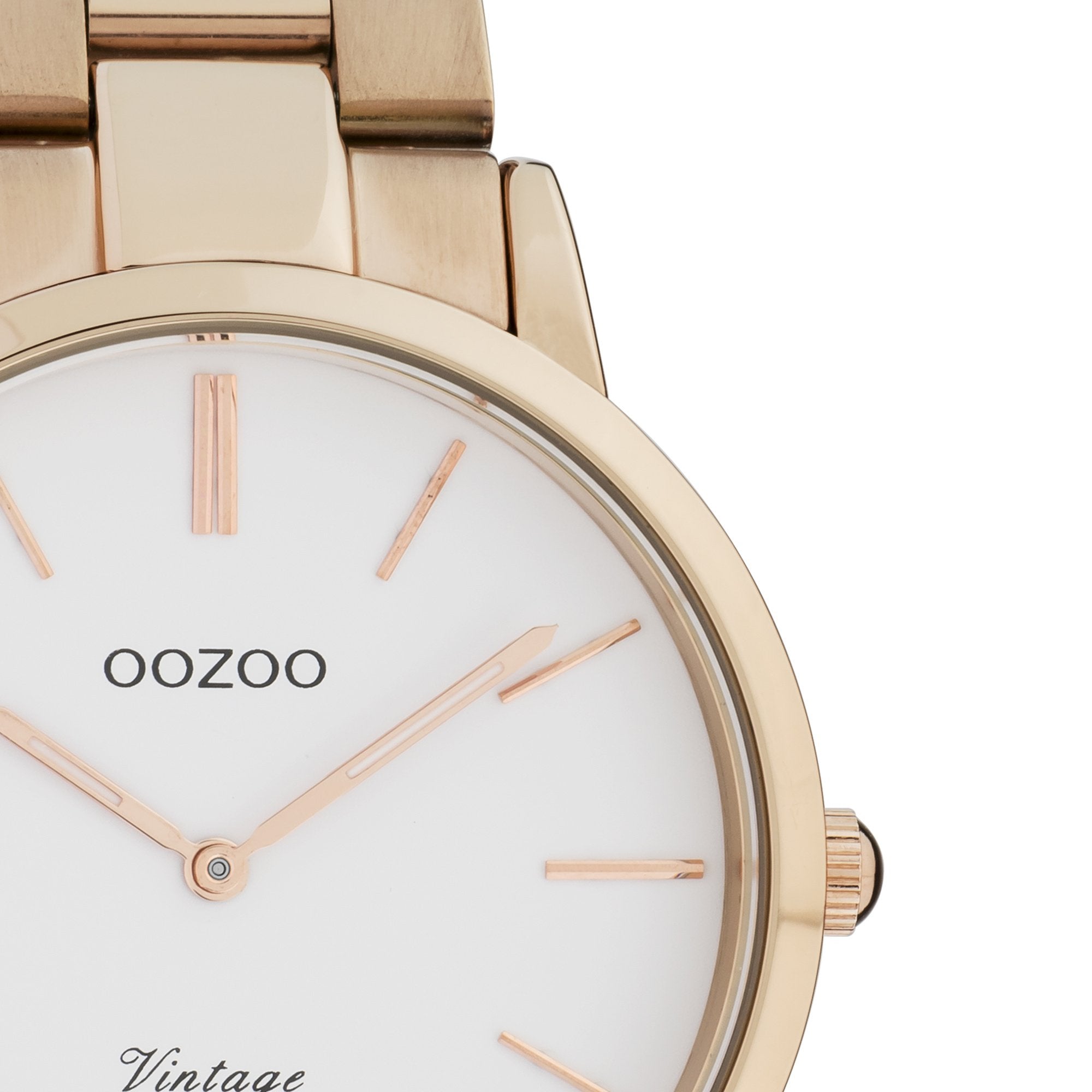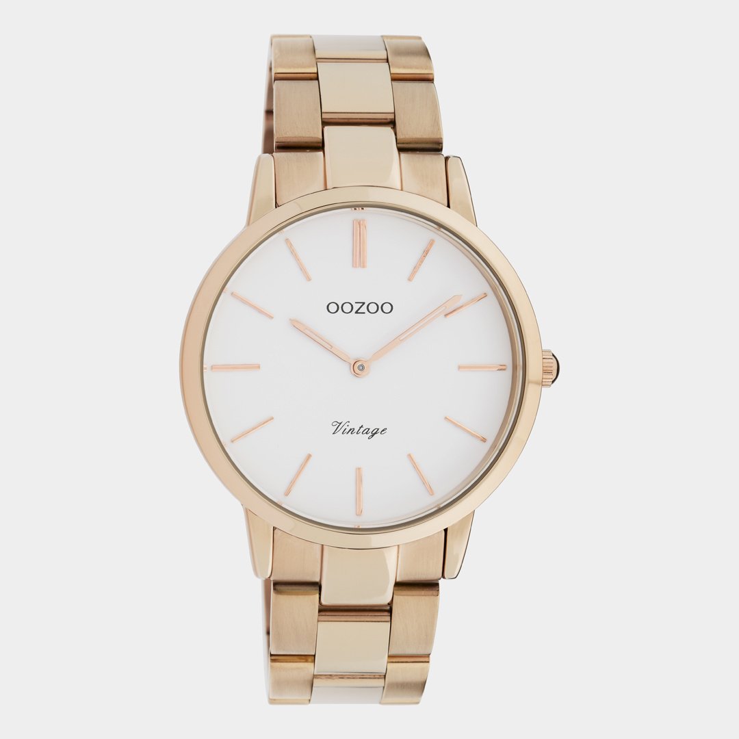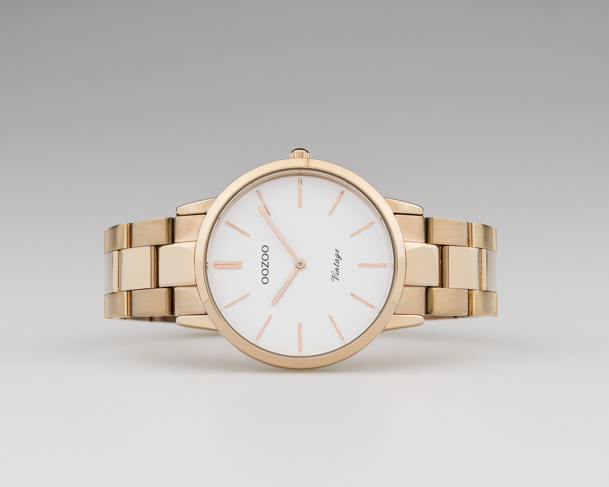Für das neue Jahrzehnt haben wir die Next Generation-Kollektion als Erweiterung der OOZOO Vintage-Serie kreiert. Bei diesem klassische runde Design C20036 mit einem zeitgemäßen Touch ist für jeden etwas dabei. Diese Damenuhr ist die perfekte Kombination aus Komfort und Eleganz mit ihrem 38mm Gehäuse aus roségoldenem Metall und dem weißen Zifferblatt. Diese Uhr ist ein Muss für jeden Tragekomfort! Das roségoldene Edelstahlarmband mit mattem Glanz macht diese Uhr zu einem Alltimer, den Sie im nächsten Jahrzehnt noch tragen können. Das Zifferblatt hat silbergestreifte Ziffern und passende Zeiger. Dieses Modell ist mit einem japanischen Markenuhrwerk ausgestattet. Außerdem ist die Uhr spritzwassergeschützt, nickelfrei und hat einen Gehäuseboden aus Edelstahl.