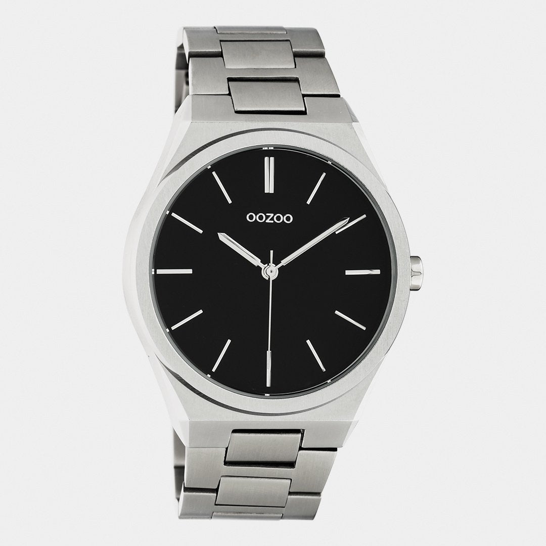 OOZOO Timepieces - Unisex - Edelstahl-Glieder-Armband - Silber/Schwarz