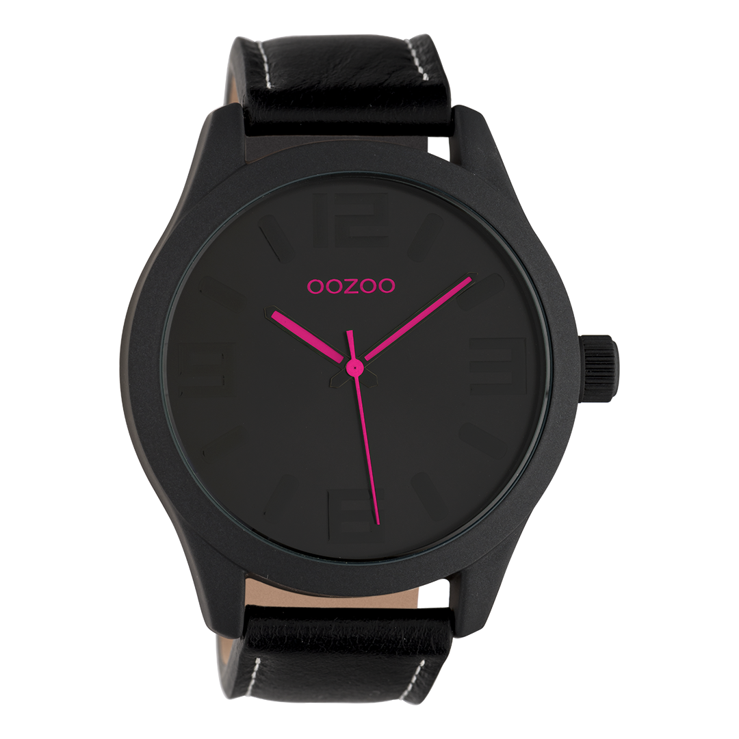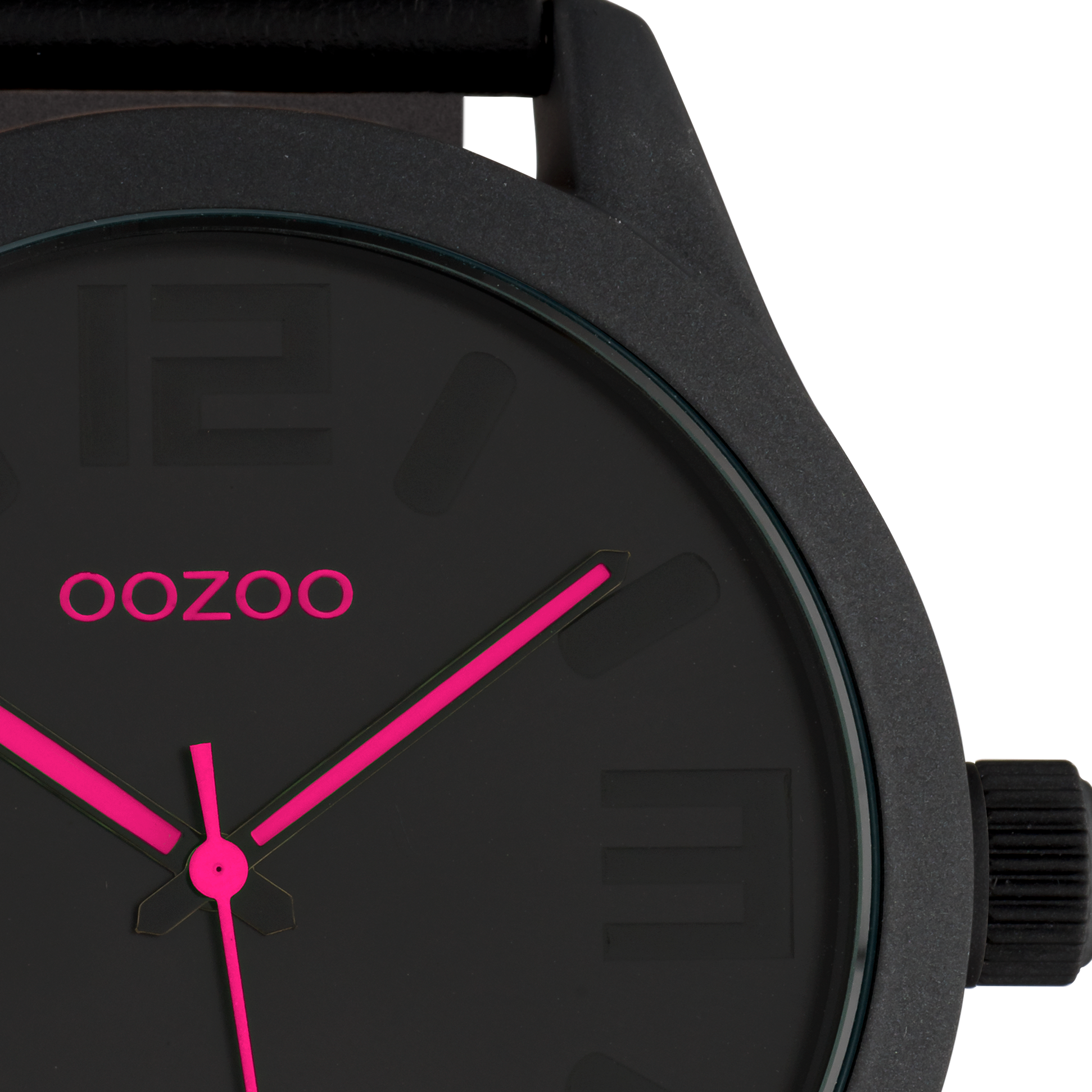 OOZOO Timepieces - C1068 - Unisex - Leder-Armband - Schwarz/Pink