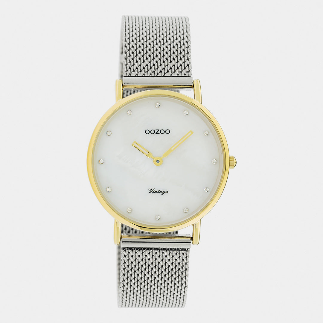 OOZOO Vintage - C20120 - Damen - Edelstahl-Mesh-Armband – Silber/Gold 32 mm S