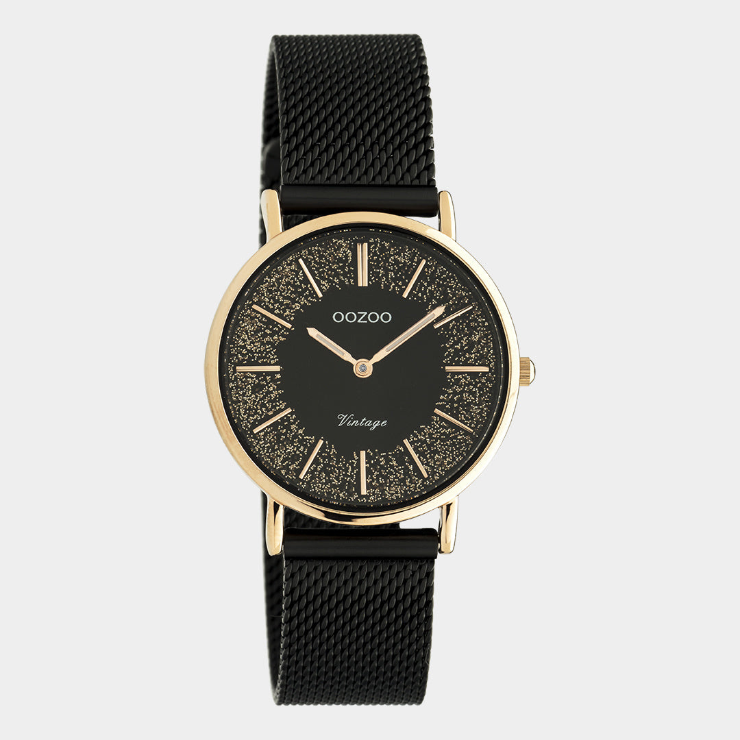 OOZOO Vintage - C20143 - Damen - Edelstahl-Mesh-Armband – Schwarz/Roségold